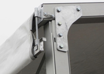 Bubong: Mabigat na tungkulin na puti 850g/sqm PVC na tela, block-out, 100% hindi tinatablan ng tubig, hindi masusunog (DIN4012 B1, M2), lumalaban sa UV.