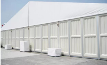 Mga pader: Mabigat na tungkulin na puti 650g/sqm PVC na tela, semi-blockout, 100% hindi tinatablan ng tubig, hindi masusunog (DIN4012 B1, M2), lumalaban sa UV.